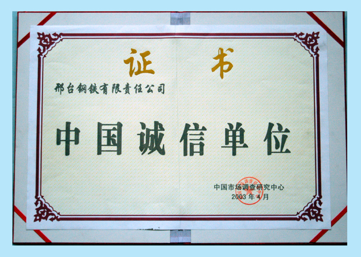 2003年4月,邢鋼被評為“中國誠信單位”。