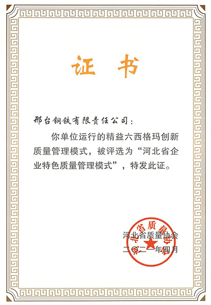 2021年4月,由河北省質(zhì)量協(xié)會評選的首批“河北省企業(yè)特色質(zhì)量管理模式”名單揭曉。邢鋼申報(bào)的“精益六西格瑪創(chuàng)新管理模式”,憑借理念先進(jìn)、方法科學(xué)、措施易行、效果明顯等優(yōu)勢上榜首批名單。