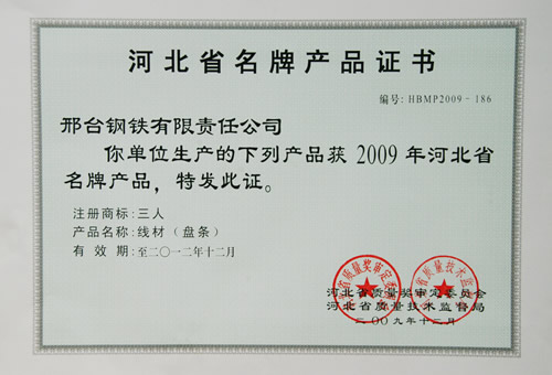 近日獲悉,2009年度邢鋼申報的“三人”牌線材產(chǎn)品,涵蓋冷墩鋼、簾線鋼、預(yù)應(yīng)力用鋼、優(yōu)質(zhì)碳素鋼、焊條用鋼、一般用低碳鋼、工業(yè)用純鐵、軸承鋼、彈簧鋼、機(jī)械結(jié)構(gòu)用鋼等十一個系列65個牌號線材產(chǎn)品榮獲“河北省名牌產(chǎn)品”。