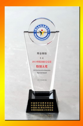 2011年6月17日,由中國外商投資企業(yè)協(xié)會、中國保護(hù)消費者基金會、中國民(私)營經(jīng)濟(jì)研究會、中國環(huán)境新聞工作者協(xié)會和北京市石景山區(qū)人民政府聯(lián)合主辦的“第三屆企業(yè)社會責(zé)任年會”在北京舉行。本次年會主題為“企業(yè)的責(zé)任戰(zhàn)略與創(chuàng)新”。年會上隆重揭曉“2011(第三屆)中國企業(yè)社會責(zé)任榜單”。邢鋼公司經(jīng)過嚴(yán)格審核,入選“中國企業(yè)社會責(zé)任榜100強(qiáng)”,并獲“2011中國企業(yè)社會責(zé)任特別大獎”,授予邢鋼董事長袁世臻 “中國履行社會責(zé)任優(yōu)秀企業(yè)家”稱號。