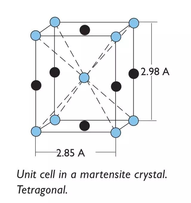 如果鋼在硬化過程中足夠快速地淬火,則碳原子沒有時(shí)間自己重新定位以允許鐵素體從奧氏體中轉(zhuǎn)變,例如在退火中。相反,它們被固定在某個(gè)位置上,使它們真正沒有足夠空間被容納,結(jié)果是導(dǎo)致更高的微應(yīng)力促使硬度增加。