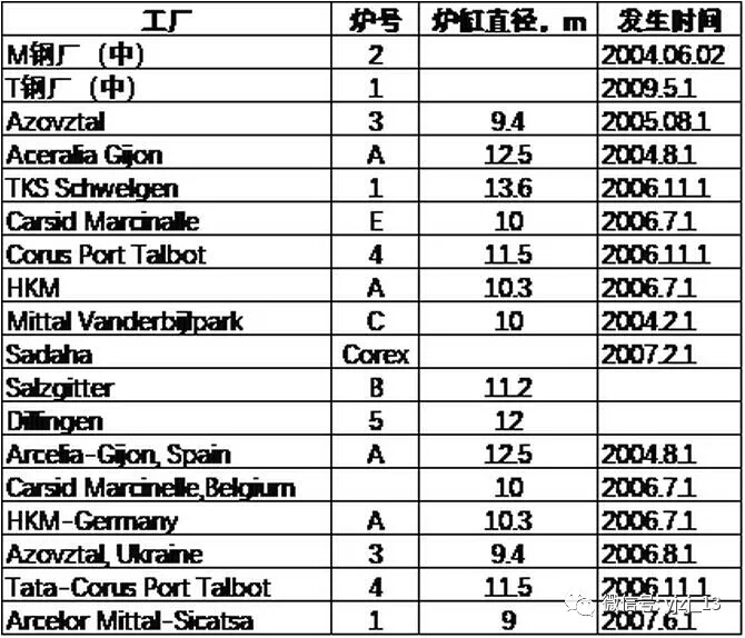 煉鐵(1980-2017年)國(guó)內(nèi)外高爐爐缸燒出事故案例及分析匯總(一)