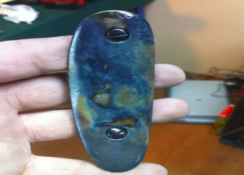 真正的藍(lán)鋼,和表面經(jīng)涂漆(或鍍層)、化學(xué)試劑浸染等表面處理的鋼是有區(qū)別的。我們知道鐵銹的主要成分是Fe2O3,俗稱鐵紅,常溫下呈紅棕色,在水合作用下,鐵銹會發(fā)生非常大的體積變化,F(xiàn)e2O3很容易剝落,導(dǎo)致典型的鐵銹紅色。