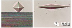 維氏壓頭壓痕(左)、努氏壓頭壓痕(右)