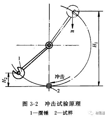 試驗過程:將樣品水平放在試驗機的支座上,缺口位于沖擊相背的方向。然后將具有一定質量m的擺錘舉至一定高度H1,使其獲得一定位能mgH1