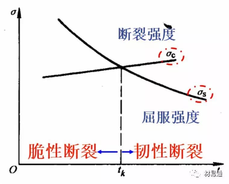低溫脆性是材料屈服強度隨著溫度的降低急劇增加的結果;見右圖,屈服點隨著溫度的下降而升高,但材料的斷裂強度隨著溫度的變化很?。粌删€交點對應的溫度就是tk。