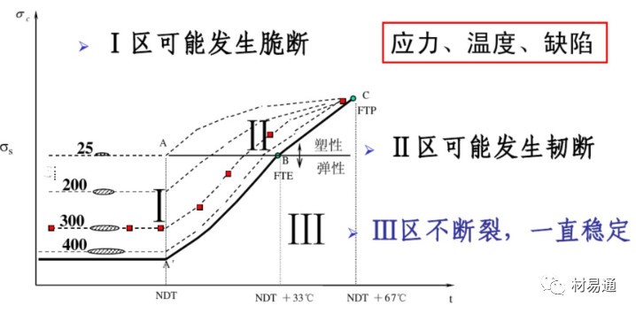 A’BC線,又稱為斷裂終止線(CAT),表示不同應力水平下脆性裂紋擴展的終止溫度。