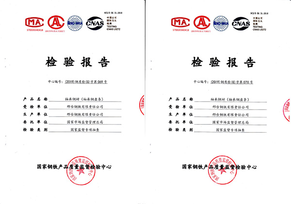受國家市場監(jiān)督管理總局委托,2019年11月國家鋼鐵產(chǎn)品質(zhì)量監(jiān)督檢驗(yàn)中心對邢鋼高碳鉻軸承鋼進(jìn)行了監(jiān)督抽查,判定依據(jù)為《2019年軸承鋼材產(chǎn)品質(zhì)量國家監(jiān)督專項(xiàng)抽查方案》,現(xiàn)場抽取了2個(gè)批次盤條,近日公司收到檢測報(bào)告2個(gè),結(jié)論為:所檢項(xiàng)目符合GB/T18254-2016《高碳鉻軸承鋼》標(biāo)準(zhǔn)及抽樣方案,判定合格,報(bào)告中顯示,7大項(xiàng)29個(gè)項(xiàng)目結(jié)果全部高于該產(chǎn)品標(biāo)準(zhǔn),達(dá)到了高級(jí)優(yōu)質(zhì)鋼級(jí)別水平。