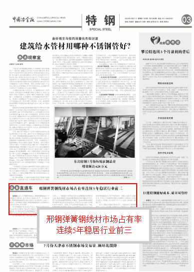 邢鋼彈簧鋼線材市場占有率連續(xù)5年穩(wěn)居行業(yè)前三