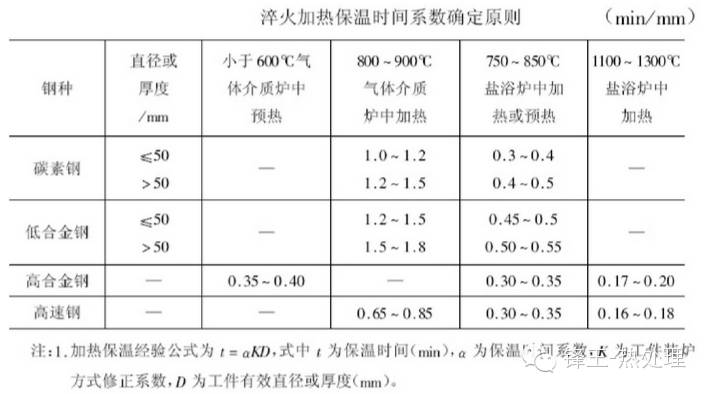 傳統(tǒng)的碳素鋼淬火加熱時間的計算公式:T=K•αD