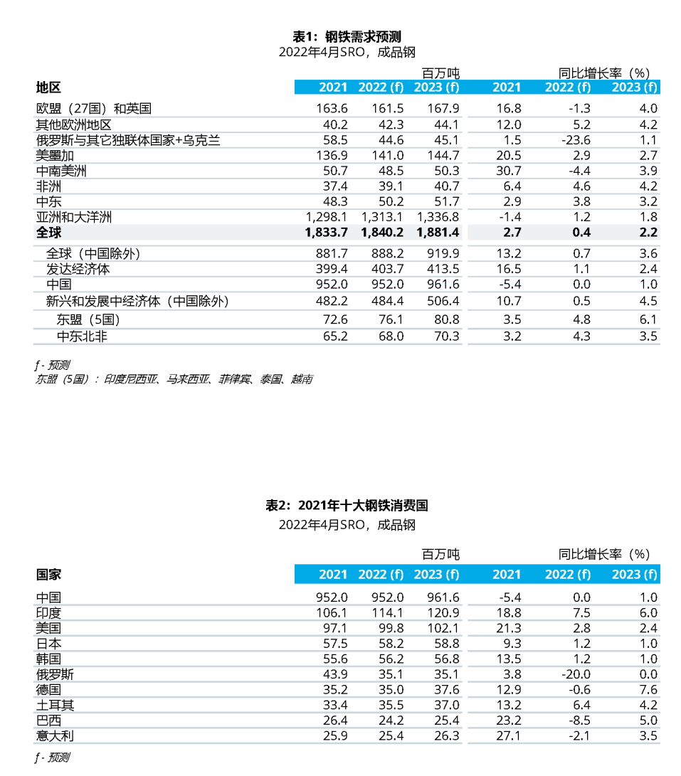 世界鋼鐵協(xié)會(huì)發(fā)布2022-2023年鋼鐵需求預(yù)測(cè)