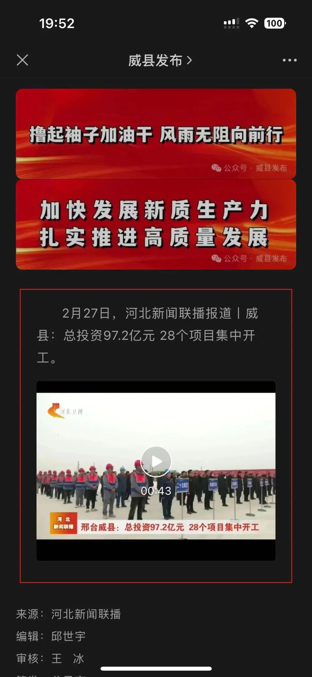 河北威縣:2024年一季度項(xiàng)目集中開工總投資97.2億元
