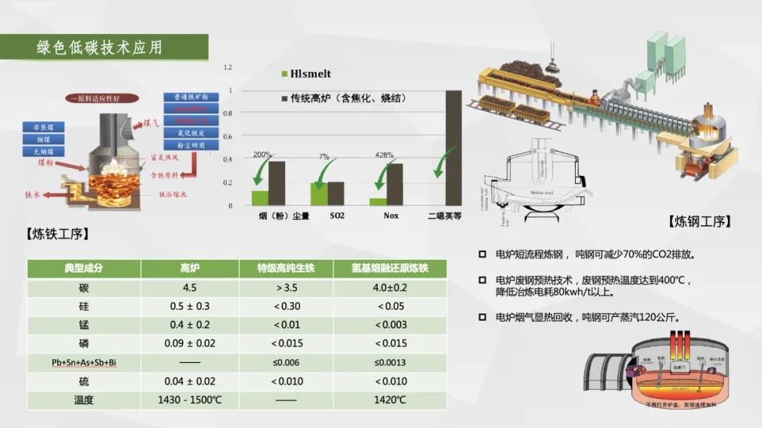 一是布局“碳達(dá)峰、碳中和”,實(shí)現(xiàn)綠色化,引領(lǐng)品牌可持續(xù)發(fā)展。采用的“熔融還原+電爐煉鋼”短流程工藝,取消了燒結(jié)、球團(tuán)、焦化、預(yù)還原等工藝環(huán)節(jié),為世界首創(chuàng);和長(zhǎng)流程工藝相比,預(yù)計(jì)可減少二氧化硫、氮氧化物排放38%,減少顆粒物排放89%,建廠即達(dá)到A級(jí)企業(yè)標(biāo)準(zhǔn),實(shí)現(xiàn)綠色冶金,對(duì)我國(guó)乃至世界鋼鐵行業(yè)發(fā)展具有創(chuàng)新性和引領(lǐng)示范的意義,是鋼鐵行業(yè)綠色轉(zhuǎn)型的典范。