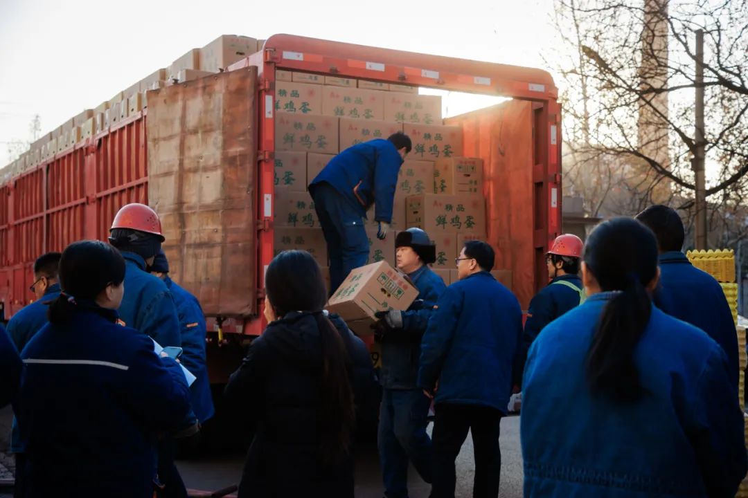 在公司各福利品發(fā)放點(diǎn),各單位員工紛紛匯聚于此,大家齊心協(xié)力,將一箱箱、一盒盒滿載祝福的禮品卸下,整齊堆碼,有序分發(fā),現(xiàn)場洋溢著一片熱鬧而溫馨的氛圍。