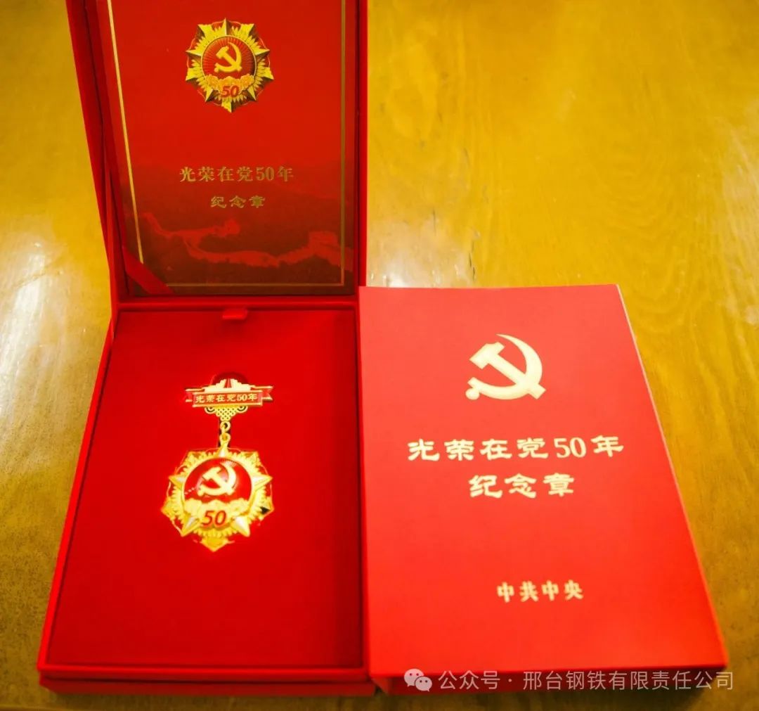 Fifty years of Party membership, fifty years of glory. Recently, the Party Committee of Xingtai Iron and Steel carried out an activity to issue the "50-Year Party Membership Commemoration Medal" to express high respect and cordial greetings to 38 veteran Party members. It aims to inspire Party members and cadres to draw red power from the advanced deeds of veteran Party members, inherit the red spirit, and forge ahead in the journey of Xingtai Iron and Steel's transformation, upgrading, and relocation project.